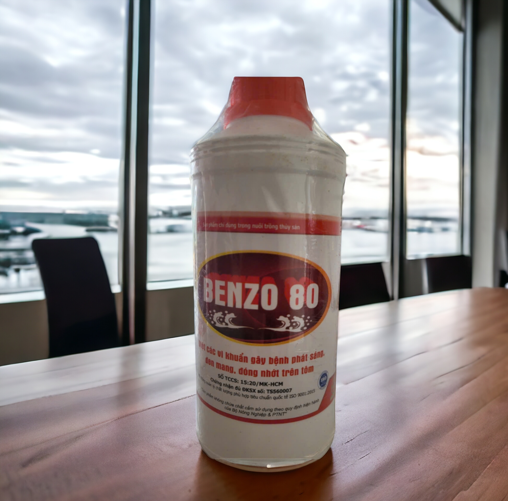 BENZO 80 là sản phẩm diệt khuẩn chuyên dụng cho nuôi trồng thủy sản, với hoạt chất Alkyl Dimethyl Benzalkonium Chloride hàm lượng cao, giúp tiêu diệt nhanh vi khuẩn gây bệnh, khử mùi hôi nước và ổn định môi trường ao nuôi.