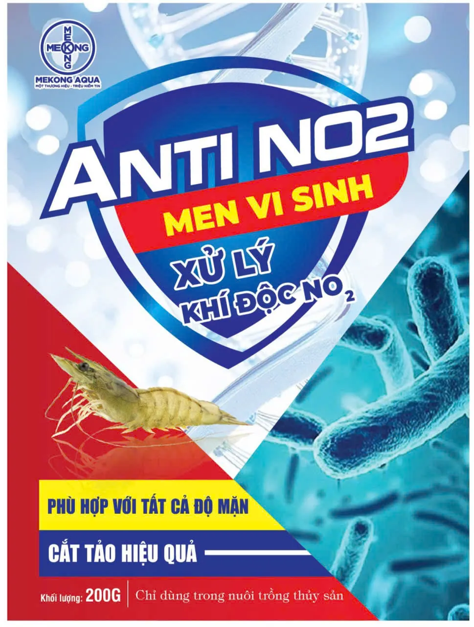 MEN NO2 là men vi sinh xử lý khí độc thế hệ mới, được nghiên cứu tối ưu cho điều kiện ao nuôi tại Việt Nam, giúp xử lý nhanh NO₂ – NH₃ – H₂S, làm sạch đáy ao và cắt tảo hiệu quả, kể cả ao có độ mặn cao trên 35‰.