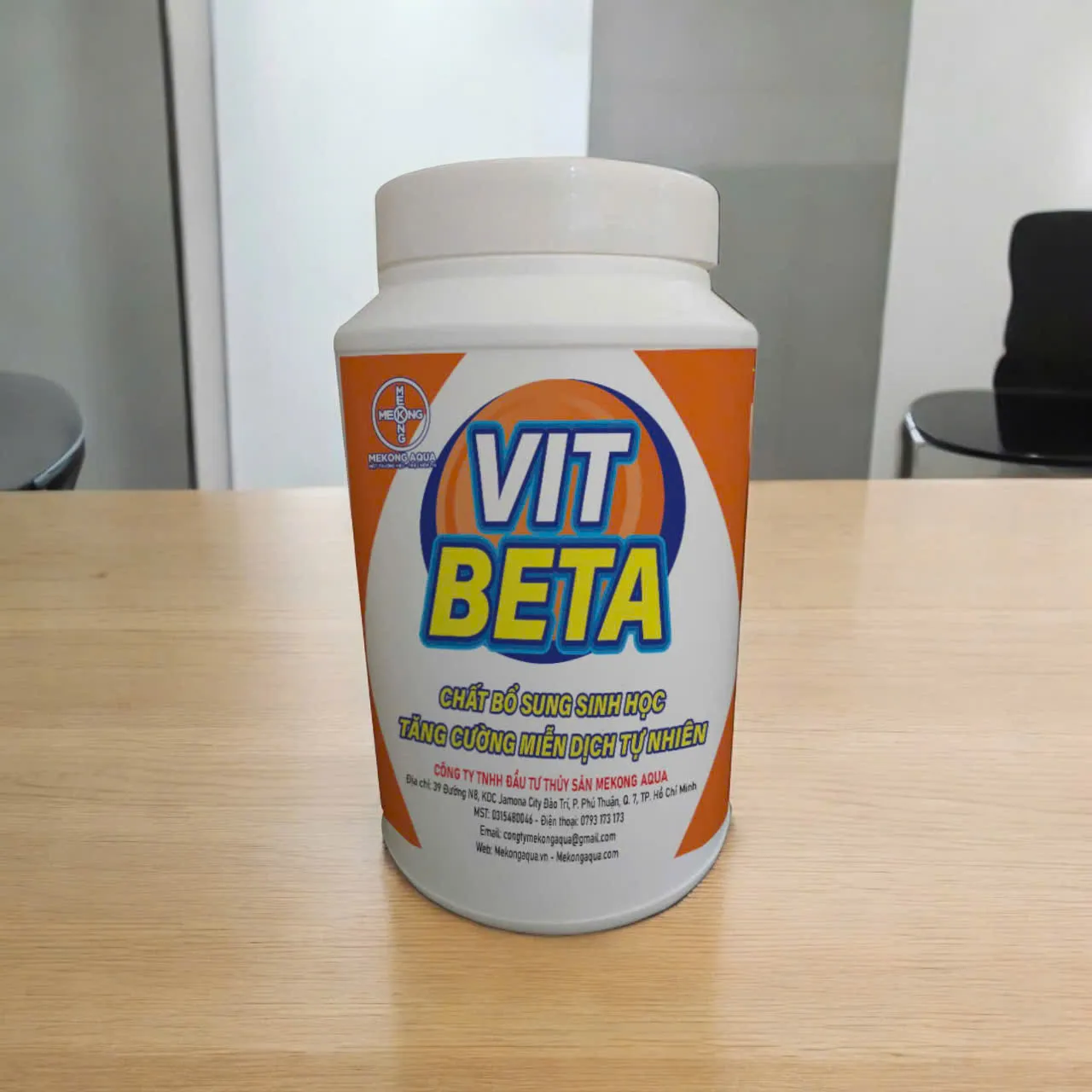 VIT BETA là chất bổ sung sinh học thế hệ mới, kết hợp Beta Glucan và Vitamin C hàm lượng cao, giúp kích hoạt hệ miễn dịch tự nhiên, hỗ trợ tôm cá chống lại tác nhân gây bệnh và thích nghi tốt với môi trường nuôi khắc nghiệt.