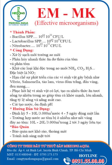 Bộ đôi vi sinh EM MK & Super Rhodo chuyên xử lý môi trường, khí độc trong ao nuôi tôm công nghiệp.
