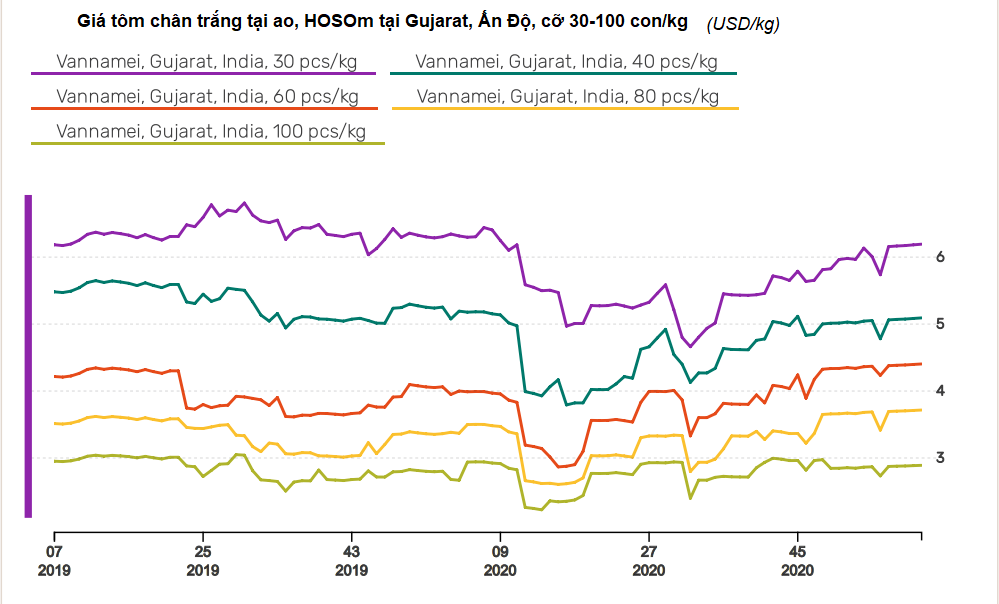 Theo ông Robins McIntosh, Phó Chủ tịch cấp cao của Tập đoàn protein Thái Lan Charoen Pokphand Foods, mặc dù sản lượng sẽ tăng trở lại vào năm 2021, nhưng mức độ tăng vẫn chưa chắc chắn. Manoj Sharma, Giám đốc điều hành của Công ty thủy sản Mayank và Chủ tịch Hiệp hội Nuôi trồng Thủy sản Gujarat, dự kiến năm nay sản lượng có thể quay trở lại 700.000 tấn. Tuy nhiên, năm nay đã bắt đầu với một vụ tôm ở bang Andhra Pradesh - đáng lẽ được thu hoạch vào tháng 12 – nhưng bị lùi lại 40-45 ngày. Samson Li, Giám đốc điều hành của nhà sản xuất thức ăn chăn nuôi Đài Loan Grobest, tỏ ra lạc quan hơn, tin rằng sản xuất của Ấn Độ sẽ tăng trở lại "rất mạnh" vào năm 2021 do đất đai dồi dào và chi phí sản xuất tương đối thấp so với các nước châu Á khác.