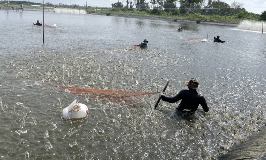 Giá này được doanh nghiệp mua tại ao, đã tính chi phí kéo tôm và vận chuyển lên xe tải.