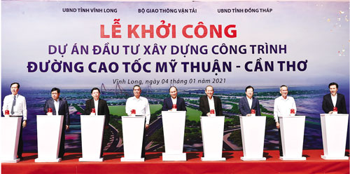 Lãnh đạo Chính phủ dự lễ khởi công đường cao tốc Mỹ Thuận – Cần Thơ ngày 4/1/2021.