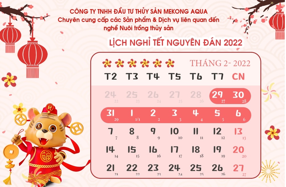 THÔNG BÁO LỊCH NGHỈ TẾT NGUYÊN ĐÁN 2022 CỦA CÔNG TY TNHH ĐẦU TƯ THỦY SẢN MEKONG AQUA